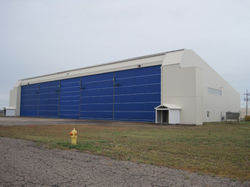 Four hangar bays, each approximately 5,000 sf square. Infrared heat, bi-fold doors opening to tarmack, overhead doors opening to parking/staging area. Two-story office space.